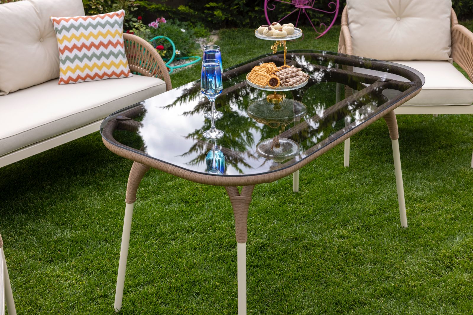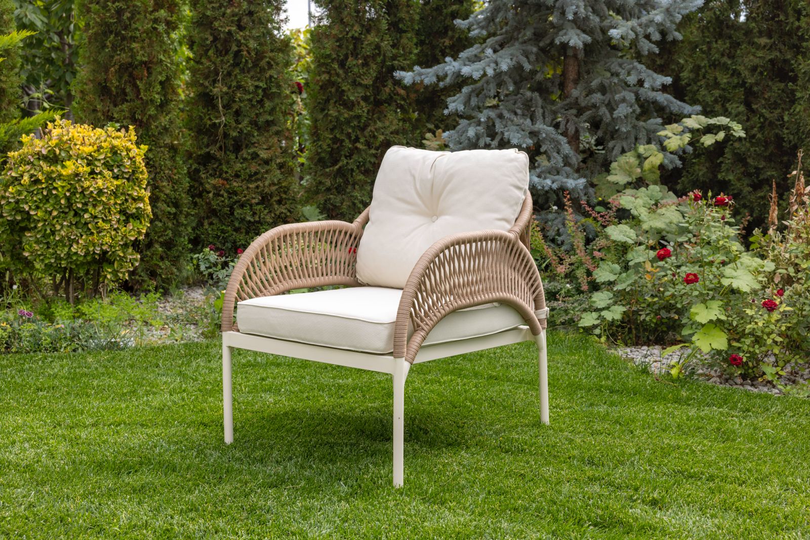 Dış mekan şartlarına dayanıklı Profil iskelet yapısı, yumuşak hatlar ve oturum konforu ile bahçe ve balkonlara zerafet katan Silver Bahçe ve Balkon Modelimiz; güçlü kombinasyonu, yüksek kaliteli ip örgü el işçiliği ve ergonomik hatlarıyla bütüncül bir tasarım algısı kuruyor.